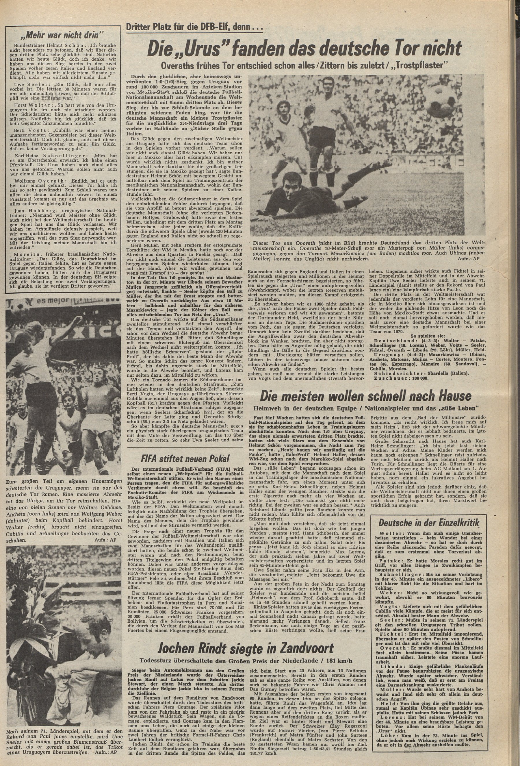 - ↑ (de) Die Urus fanden das deutsche Tor nicht Deister- und Weserzeitung, 22 juni 1970