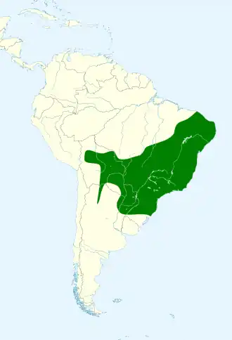 Deze soort komt voor in zuidelijk-centraal, zuidoostelijk en oostelijk Zuid-Amerika en telt vier ondersoorten:[2]