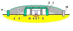 De meeste ganggraven zijn te vinden in ronde heuvels, maar op Langeland (bijvoorbeeld het ganggraf van Myrebjerg) en Lolland (Kong svends høj) zijn het vaker hunebedden. De gaten tussen de zwerfkeien werden opgevuld met een tussenmuur van gestapelde platte steenplaten. De bodem van de kamer was opgebouwd uit lagen van verschillende materialen. Stenen platen werden gebruikt als afsluiting van de graven, zodat de collectieve graven met tussenpozen konden worden gebruikt. Gebruikte men het graf uiteindelijk niet meer, dan sloot men het graf af met stenen.