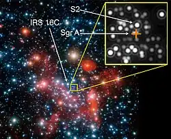 - ↑ (en) S Gillessen, F Eisenhauer, S Trippe, T Alexander, R Genzel, F Martins, T Ott voor Astrophysical Journal Monitoring Stellar Orbits Around the Massive Black Hole in the Galactic Center, 2009.