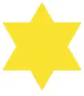 De gele driehoek die met de punt naar boven wijst, was altijd aanwezig bij een jood. Als de jood naar nazinormen nog meer op zijn kerfstok had, werd de omgekeerde driehoek ingekleurd. Was de jood bijvoorbeeld ook nog een crimineel, dan kreeg hij een omgekeerde groene driehoek over zijn gele driehoek. Joodse homoseksuelen kregen een combinatie van geel met roze en joodse lesbische vrouwen kregen geel met zwart. Paste een joodse gevangene niet in de voorvermelde categorieën, dan was de ster volledig geel.