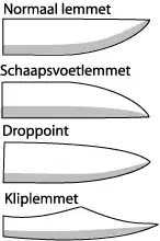 - Dolkmes: een tweesnijdend mes met een niet-symmetrisch lemmet.