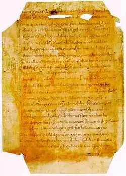 Toverspreuken zijn dan ook overgeleverd in onder andere het Oudengels en het Oudhoogduits, bijvoorbeeld de tweede Merseburger toverspreuk. Frappanter is de Oudsaksische Heliand, een evangelie-epos uit de negende eeuw, waarin diverse sporen van magie en waarzeggerij te vinden zijn.[12] Een goede reden voor het feit dat dergelijk materiaal bewaard is gebleven, is naast 'gedoogbeleid' ook het gegeven dat het vaak afdoende was om heidense (goden)namen weg te laten en christelijke in te voegen. Een ander voorbeeld is het toevoegen van 'Driemaal onzevader' aan het eind van de spreuk.[13] Een voorbeeld uit de Anglo-Saxon Charms is hieronder gegeven.
