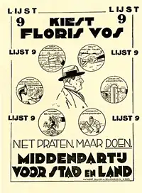 De voorman van de Middenpartij was Floris Vos, die in 1929 een nogal persoonlijke getinte verkiezingsstrijd voerde. Hij leidde het protest tegen tolheffing voor automobilisten op de toen drukke weg tussen Amsterdam en het Gooi. Een door Vos georganiseerde blokkade leidde tot lange files en veel publiciteit. In de Tweede Kamer speelde hij geen opvallende rol.