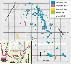 Het holotype, UMNH.VP.26004, is gevonden in een laag zandsteen van de onderste Yellow Cat Member van de Cedar Mountain Formation waarvan de ouderdom onzeker is maar die dateert ergens tussen het late Berriasien en het vroege Aptien, 142 tot 124 miljoen jaar oud. Het bestaat uit een relatief volledig skelet met schedel. Bewaard zijn gebleven: een gedeeltelijke schedel met onderkaken, tanden, negen halswervels, elf ruggenwervels, vijftien staartwervels, twee chevrons, elf nekribben, zes ribben van de borstkas, zes sacrale ribben, beide schouderbladen, de linkeronderarm inclusief hand, het bekken, beide dijbeenderen en het linkeronderbeen inclusief voet. Het skelet lag niet in verband en de beenderen waren verspreid over tien vierkante meter. Uit de positie van de achterste ledematen maakte men op dat het dier in de modder was blijven steken. De fossielen zijn geprepareerd door de Utah Geological Survey. Het holotype is een jongvolwassen dier. Twee botten die op de vindplaats zijn aangetroffen maar niet tot het holotype behoren, zijn aan de soort toegewezen. Het betreft de specimina UMNH.VP.26010, een dentarium van de onderkaak, en UMNH.VP.26011, een dijbeen. In beide gevallen gaat het om een jong dier. Het holotype was in 2017 het meest complete skelet van een sauropode dat uit het Onder-Krijt van Noord-Amerika bekend was.