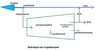 Een irrigatieproject betrekt het water meestal van een rivier en verdeelt het over het geïrrigeerde gebied. Hydrologische gevolgen zijn: