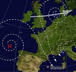 - ↑ Météo-France, Glossaire: mistral