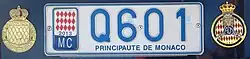 Kentekenplaten van Monaco zijn klein (een paar centimeter kleiner dan een Amerikaanse kentekenplaat) en zijn samengesteld uit vier cijfers en/of letters. De platen hebben een blauw lettertype op een witte achtergrond en hebben het wapenschild van Monaco aan de linkerkant met het jaartal (alleen op de achterplaat) om te bevestigen dat die belasting is betaald. Alle platen die beginnen met "000" behoren tot de familie van de prins.