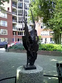 - een beeld in de vorm van een phoenix van Arend Soerink, het is een bronzen sculptuur op een betonnen sokkel; wanneer dit beeld is geplaatst is onbekend, maar het stadsarchief van Amsterdam bezit een foto van een stratenmaker uit circa 1988 die de straatstenen voor het beeld aan het leggen is[2]