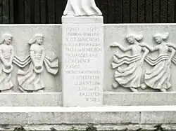 Het monument is geheel gemaakt van kalksteen en is twee meter hoog en vier meter breed. In het midden van het monument staat een vrouwenbeeld met in haar linkerhand een boek terwijl op haar rechterhand een duif landt. Aan beide zijden van het beeld is een reliëf van drie vrouwenfiguren aangebracht. Recht onder het vrouwenbeeld zijn de namen van de tien slachtoffers aangebracht.
