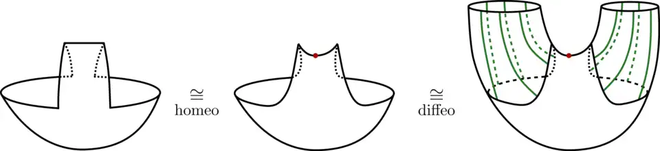 - ↑ Dit zijn twee kopieën van die langs hun rand aan elkaar zijn geplakt door een diffeomorfisme .
