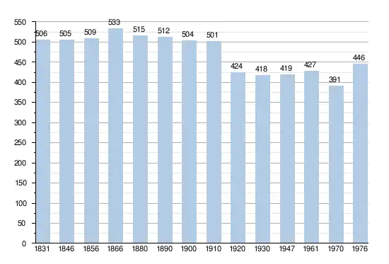 - Bronnen:NIS, Opm:1831 tot en met 1970=volkstellingen, 1976= inwonersaantal op 31 december