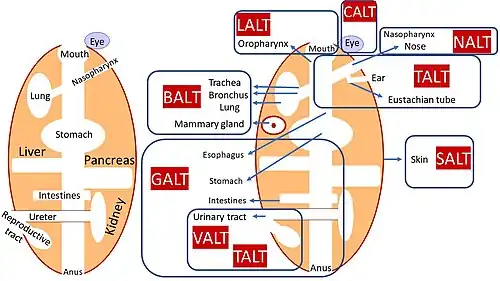 - CALT (conjunctivageassocieerd lymfoïde weefsel)[3]