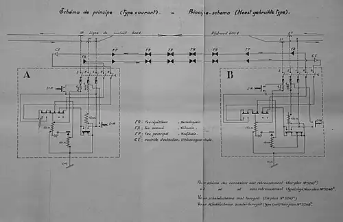 - ↑ NMVB, Schakelschema type 1941 met "terugrit", 5248C, archief VlaTAM IV C5, F 1.4,