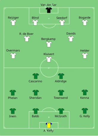 - ↑ Oranje wankelt rood van schaamte naar kwartfinales Trouw.nl, 19 juni 1996