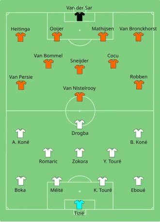 Nederland Vlag van Nederland 2 – 1 Vlag van Ivoorkust Ivoorkust Mercedes-Benz Arena, Stuttgart