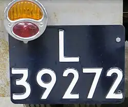 De kentekenplaat was donkerblauw waarop de letter(s) en het nummer in het wit waren aangebracht.[g][5] Dit mocht een rechthoekige metalen plaat zijn, maar het was ook mogelijk de kentekenplaat op het voertuig te schilderen.[h][5] De kentekenplaat moest aan de voor- en achterzijde van het voertuig worden aangebracht.