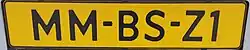 | 12 | 2021 | X-99-XXX | geel | zwart | landbouwvoertuigen (en bedrijfswagens vanaf 8-1-2024, bijzondere bromfietsen vanaf 1-7-2025)[16][17] | T-01-BBB, V-01-BBB, E-01-BBD |