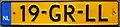| Auto, vrachtauto, aanhangwagen boven 750 kg | 520×110 mm (langwerpig) | 340×210 mm (rechthoekig, twee regels) | alleen op gele plaat | Het rechthoekige model komt vooral voor op bestelwagens. Voorheen ook op Amerikaanse auto's. |