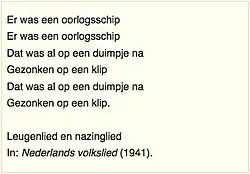 - 1 2 3 4 Zie de website Opa Zingt - Nederlandse volksliedjes, op opazingt.nl en ook het bijbehorende YouTube-kanaal Opa Zingt. Zang: Ad Murck.