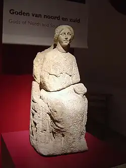 Een afbeelding van een tronende godin met kinderen aan de borst, met schoothondjes, of met manden fruit[4] wordt door Lothar Schwinden getypeerd als een moedergodin (zoals de Gallo-Romeinse versie van de Keltische Aveta).[5]