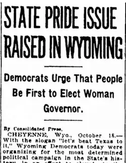 Nellie Tayloe huwde William Bradford Ross op 11 september 1902. Ze hadden elkaar leren kennen in Tennessee in 1900. William Ross won als Democratisch politicus de gouverneursverkiezingen van 1922 in Wyoming en werd begin 1923 de 12e gouverneur van de staat. Hij overleed evenwel op 2 oktober 1924. Hij werd voor de laatste maanden van zijn termijn opgevolgd door de Republikein Frank Lucas maar de Democratische Partij trok in oktober 1924 met de gouverneursweduwe Nellie Tayloe Ross naar de verkiezingen van 3 november 1924. Lucas kwam niet op, de Republikeinen schoven Sullivan naar voren. Tayloe Ross behaalde 55,12% van de stemmen, Sullivan 44,88%. Op 5 januari 1925 werd Nellie Tayloe Ross de 14e gouverneur. Ze was de allereerste vrouw in de Verenigde Staten die gouverneur van een staat werd, en is tot heden de enige vrouwelijke gouverneur geweest die Wyoming ooit gehad heeft. Ze verdedigde krachtig de drooglegging. In november 1926 verloor ze een mogelijke herverkiezing en ging de gouverneurszetel terug naar een Republikein, Frank Emerson. Tayloe Ross bleef evenwel politiek actief binnen de Democratische Partij en engageerde zich onder meer sterk in de presidentiële verkiezingscampagne van Franklin D. Roosevelt.