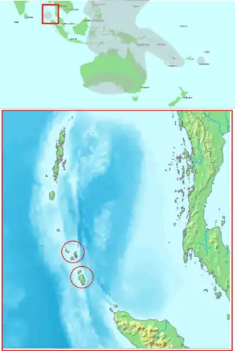 | Verspreiding van het Nicobarenboshoen. | ||||||||||||