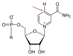 - ↑ Ter verduidelijking: beschouw de nicotinamide-ring als liggende in het vlak van een bladzijde. Een klasse A-enzym draagt het waterstofion over van "voren" (boven de bladzijde); klasse B van "achteren" (onder de bladzijde).[41]