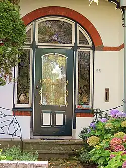 Het woonhuis in de trant van de jugendstil of art nouveau is gerealiseerd naar een ontwerp van de Groninger architect J.P. Hazeu en ongetwijfeld een van de fraaist bewaard gebleven Jugendstil-woonhuizen in de gemeente Smallingerland of zelfs in de provincie Friesland. Opvallend in de voorgevel is het grote hoefijzervormige venster van de ontvangstkamer, dat voorzien is van glas-in-loodramen met waterleliemotieven. Die bevinden zich ook rond de deur. Naast dit glas-in-lood zijn de expressieve zweepslaglijnen in het ijzerwerk kenmerkend voor de art nouveau.[3]