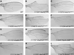 Notch werd ontdekt in een gemuteerde Drosophila melanogaster in maart 1913 in het laboratorium van Thomas Hunt Morgan.[29] Deze mutant ontstond na verschillende generaties van het kruisen en terugkruisen van gleufvleugelvliegen met wilde-type vliegen en werd voor het eerst gekarakteriseerd door John S. Dexter.[30] Het meest frequent waargenomen fenotype in Notch-mutante vliegen is het verschijnen van een ronde inkeping (engels:notch) aan het meest distale uiteinde van de vleugels, waarnaar het gen is vernoemd, vergezeld door een zijkant zonder borstelharen.[31][32]Het bleek een dominant geslachtsgebonden mutant op het X-chromosoom te zijn die alleen kon worden waargenomen bij heterozygote vrouwtjes, omdat het dodelijk was bij mannetjes en homozygote vrouwtjes.[29] Het eerste Notch-allel werd in 1917 vastgesteld door C.W. Metz en C.B. Bridges.[33] Eind jaren dertig leverden studies van vliegenembryogenese, uitgevoerd door Donald F. Poulson, de eerste indicatie van Notch's rol in de embryonale ontwikkeling.[34] Notch-8 mutante mannetjes vertoonden een gebrek aan de binnenste kiembladen, het endoderm en mesoderm, wat resulteerde in embryonale letaliteit. Latere studies in vroege Drosophila melanogaster-neurogenese leverden enkele van de eerste indicaties van Notch's rol in cel-cel signalering, aangezien het zenuwstelsel in Notch mutanten werd ontwikkeld door het opofferen van hypodermale cellen.[35]