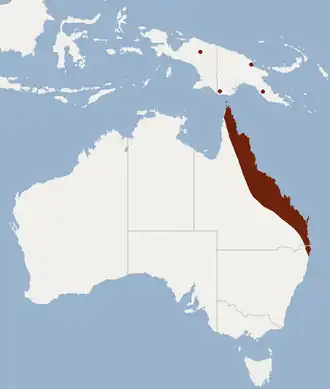 | Verspreidingsgebied van Nyctophilus bifax. | ||||||||||||
