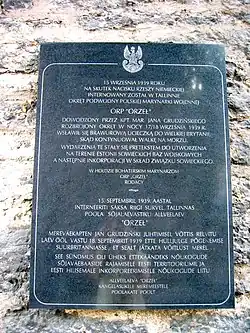 Aangekomen, op 14 september 1939, voor de haven van Tallinn kreeg Orzeł toestemming om af te meren in de haven van Tallinn als hij binnen 24 uur weer zou vertrekken. Op 15 september kreeg de nieuwe commandant van de Orzeł, Grudzinski, te horen dat de Orzeł pas 24 uur na de Duitse koopvaarder Thalassa mocht vertrekken, dit was conform de Conventie van Den Haag. Een dag later kwam echter het bericht dat de Orzeł in beslag werd genomen. De Estse regering had misschien een deal gesloten, of was onder druk gezet door de Sovjet-Unie en Duitsland.[3]