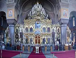 De binnenkant ademt, anders dan de buitenkant, een 19e-eeuwse Russisch-orthodoxe sfeer uit. Binnen is er een grote open vloer en zijn er, zoals gebruikelijk in orthodoxe kerken, geen zitbanken. Ook de iconostase ontbreekt niet.