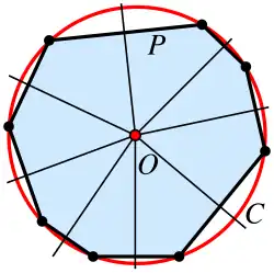 Omgeschreven cirkel C van een cyclische veelhoek P