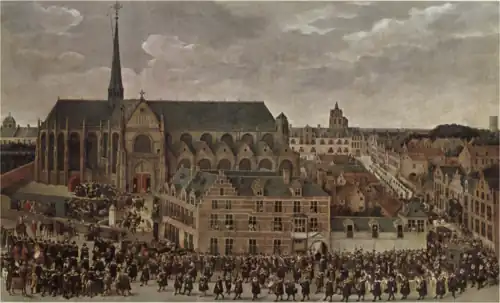 - ↑ Thomas Buyse, "In dese dangereuse conjuncture des tyts". Sociaal kapitaal van de schuttersgilden in Gent, Antwerpen en Brussel van Beeldenstorm tot het einde van het Twaalfjarig Bestand (1566 – 1621)