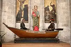 Tussen twee zuilen vindt men een kleiner koororgel met 8 registers gebouwd door Rudi Jacques in 2011. In het van het prachtige houtsnijwerk vindt men een afbeelding van de boot uit de stichtingslegende van de kerk.