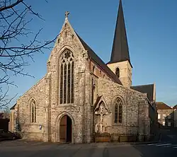 Begin 12e eeuw werd een kerk gebouwd op een wat hogere rug langs de Schelde. Enkele restanten uit de 13e eeuw zijn bewaard gebleven. In de 16e eeuw werd de kerk verbouwd in de trant van de Scheldegotiek. Er werd een vierkante toren en een driebeukig schip gebouwd, en in 1761 werd mogelijk een nieuwe klokkengeleding gebouwd. Van 1876-1880 werd de kerk verlengd met één travee, en de zijbeuken werden verbreed, dit alles naar ontwerp van Auguste Van Assche.