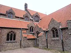 Detail van de kerk (links) en achterzijde koor | ||