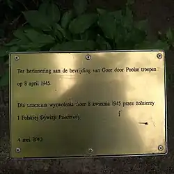 ‘Ter herinnering aan de bevrijding van Goor door Poolse troepen op 8 april 1945.