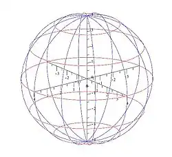 Indien constant gehouden wordt en enkel varieert ontstaat een cirkel met straal , op hoogte boven of onder het xy-vlak. Deze cirkels vormen de breedtecirkels, zoals op de aardbol. Indien constant gehouden worden verkrijgt men eveneens cirkels, maar nu cirkels die verticaal gelegen zijn en de z-as snijden in en . Deze kunnen geïnterpreteerd worden als lengtecirkels zoals op de aardbol. De familie van breedtecirkels en de familie van lengtecirkels beschrijven een coördinaten systeem op het boloppervlak, net zoals dit op de aardbol gebeurt.