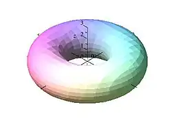 Aangezien deze vorm even is in elk van de variabelen, is de torus symmetrisch ten opzichte van elk coördinaatsvlak, elke coördinaatas en de oorsprong.
