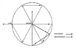 • het beginpunt van het zoekpatroon (CSP= commence search point).