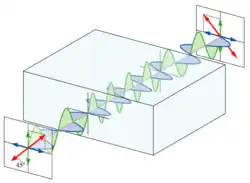 Optische rotatie is de veranderde richting van lineair gepolariseerd licht, wanneer dit door een oplossing van een optisch actieve stof valt. De polarisatie-richting kan positief of rechtsdraaiend zijn (met de klok mee), dan wel negatief of linksdraaiend (tegen de klok in). De grootte van de hoek waarmee de rotatie wordt veranderd hangt af van de optische weglengte l [decimeter], de concentratie van de oplossing c [gram per kubieke cm], en de chemische eigenschap specifieke rotatie van de optisch actieve stof [α]λT. [1]