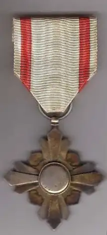 Het kruis van de VIIIe graad was van zilver en deze lage graad werd niet geëmailleerd. Men droeg de versierselen aan een wit lint met een rode streep langs de rand.