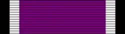 Het lint is diep purper gekleurd met brede witte en zwarte biezen.Oudere linten hebben de kleuren zwart, rood en wit in gelijke banen.