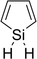 Silolen, ook aangeduid als silacyclopentadienen, vormen een groep verbindingen waarin een van de koolstofatomen in cyclopentadieen, het verzadigde koolstofatoom, is vervangen door silicium. Ze kunnen ook beschreven worden als het silicium-analogon van pyrrool. Momenteel (2010) trekken silolen vooral academische belangstelling in verband met hun elektroluminescentie en andere elektronische eigenschappen.[19][20] Elektronen kunnen zich makkelijk via silolen verplaatsen. Deze eigenschap is het gevolg van een laag-energetische LUMO die ontstaat door interactie tussen een antibindende sigma-orbitaal tussen silicium en koolstof met een antibindende π-orbitaal van het 1,3-butadieengedeelte van het molecuul.