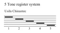 Het Trique dat in Copala wordt gesproken heeft een gemengd systeem, drie toonhoogten maar met toonhoogteverloop over vijf registers.