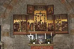 In de apsis staat een laatgotisch vleugelaltaar van een onbekende meester. Het werd rond 1460 gemaakt, vermoedelijk in een atelier in Hamburg of Lübeck. Aan de toonzijde ziet men zeven eikenhouten scènes uit de lijdensgeschiedenis van Jezus onder baldakijnen met maaswerk; centraal in het verhoogde middenveld wordt de kruisiging uitgebeeld. Op de binnenvleugels zijn 16 schilderijen uit het leven van Maria te zien. Op de rugzijde bevinden zich nog fragmenten van de Gregoriusmis en de Martelarenboom. De beide bovenste zijvleugels tonen Anna te Drieën en de heilige Andreas. Een voorstelling van het Laatste Avondmaal uit een latere periode siert de predella.