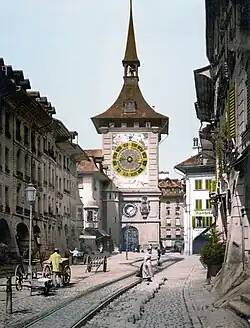 Na 1218, toen Bern een vrije stad werd, werd de stad westelijk uitgebreid tot aan de markante klokkentoren, die gebouwd werd van 1218 tot 1256 en gerestaureerd in 1771. De Zytglogge toren was de toenmalige westelijke stadspoort. Op de klok bevindt zich een astronomische kalenderklok.