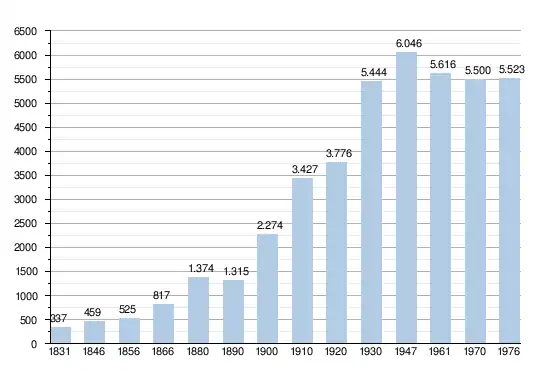 - Bronnen:NIS, Opm:1831 tot en met 1970=volkstellingen, 1976= inwoneraantal op 31 december